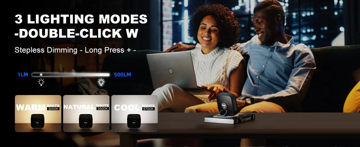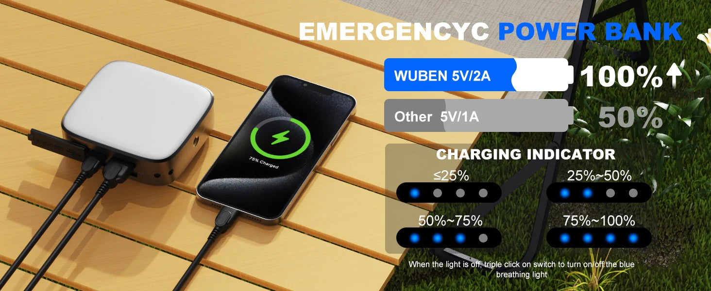 Kleine Größe, große Leistung: 5200mAh-Hochkapazitätsakku, bis zu 190h Laufzeit (niedrige Helligkeit). Schnelle 5V/2A-Ein-/Ausgabe zum schnellen Laden und zum Aufladen Ihrer Geräte. Sie sind nie im Dunkeln. (Der USB-C-Anschluss kann keine anderen Geräte laden.)